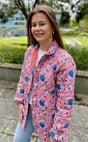 Få antall igjen - Quiltet jakke - Block print - Blå blomstret/fersken er restordret og sendes så snart den er tilbake på lager.